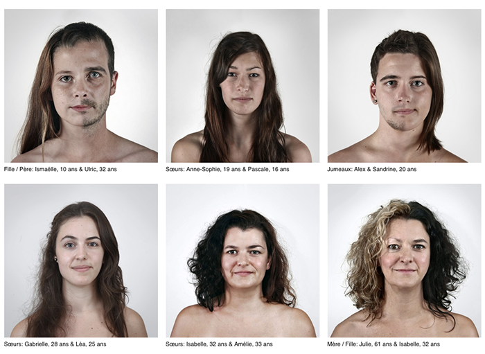 Relatives are photographed together creating some new hybrids. The genetic similarities across the faces are really neat!