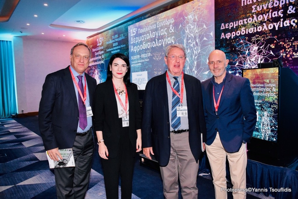 With (from left to right) Prof. A. Stratigos, University of Athens-GR; // Prof. D. Rigopoulos, University of Athens-GR; President of the Hellenic Society of Dermatology and Venereology; // Prof. Ch. Griffiths, University of Manchester-UK.