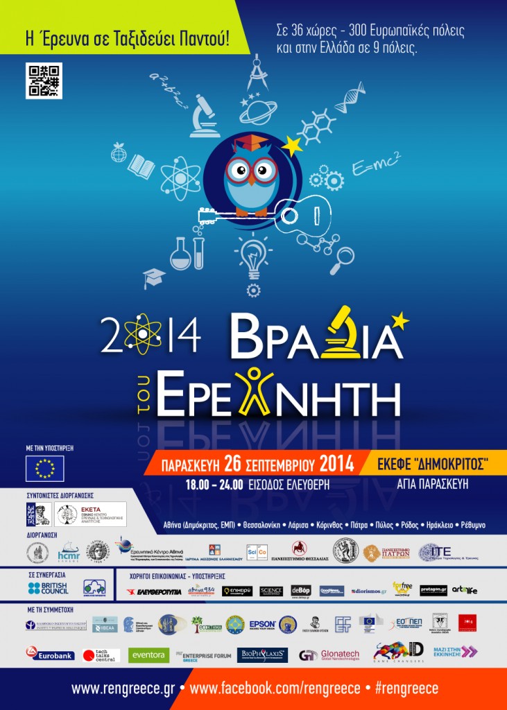 I am delighted to announce that the new MEDinART video will be screened during the art exhibition of NCSR “Demokritos” that will take place as part of “Researchers Night 2014”: the European festival dedicated to sciences. Numerous research centers and universities from 9 cities in Greece and 300 cities around Europe will participate in this Festival, celebrating Science.