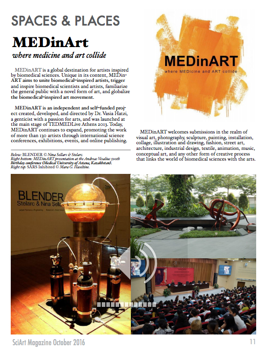 Excited to announce that MEDinART is presented in the New York based SciArt Magazine, October 2016, issue!