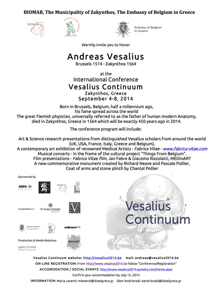 So excited to announce that MEDinART will participate with a video screening in Vesalius Continuum: the international Art/Science event that will be held in Zakynthos on 4-8 September 2014.